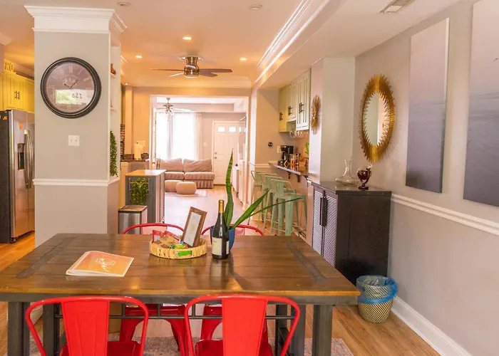 Die Villa bietet eine Essecke mit Ausstattung zur Kaffee- & Teezubereitung. Es gibt auch eine Mikrowelle, eine Kaffee-/Teemaschine und einen Kühlschrank in der Küche. Das Restaurant Straw Stick & Brick Delicatessen, die eine große Auswahl an Gerichten bietet, ist etwa 650 Meter von hier entfernt. Diese Villa ist in circa 10 Gehminuten Entfernung von der Bushaltestelle Georgia Avenue & Gallatin Street.